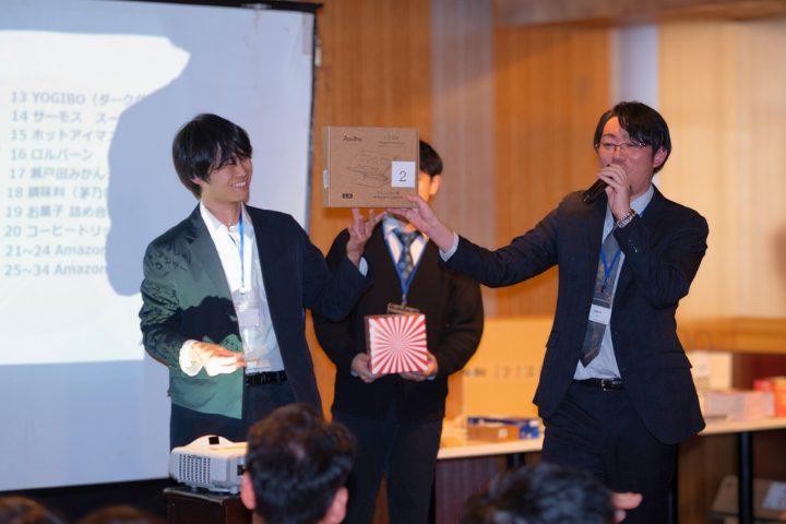 クイズでは正解数が多かったテーブルの上位3位にはくじ引き形式で賞品が贈られました。